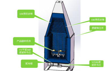 一般來說5G毫米波屏蔽暗室內(nèi)部測試支架結(jié)構(gòu)還包括 :夾具, 支架 轉(zhuǎn)臺 軸承固定床 電機 360同步帶旋轉(zhuǎn) USB出線口 4個USB接口 電機